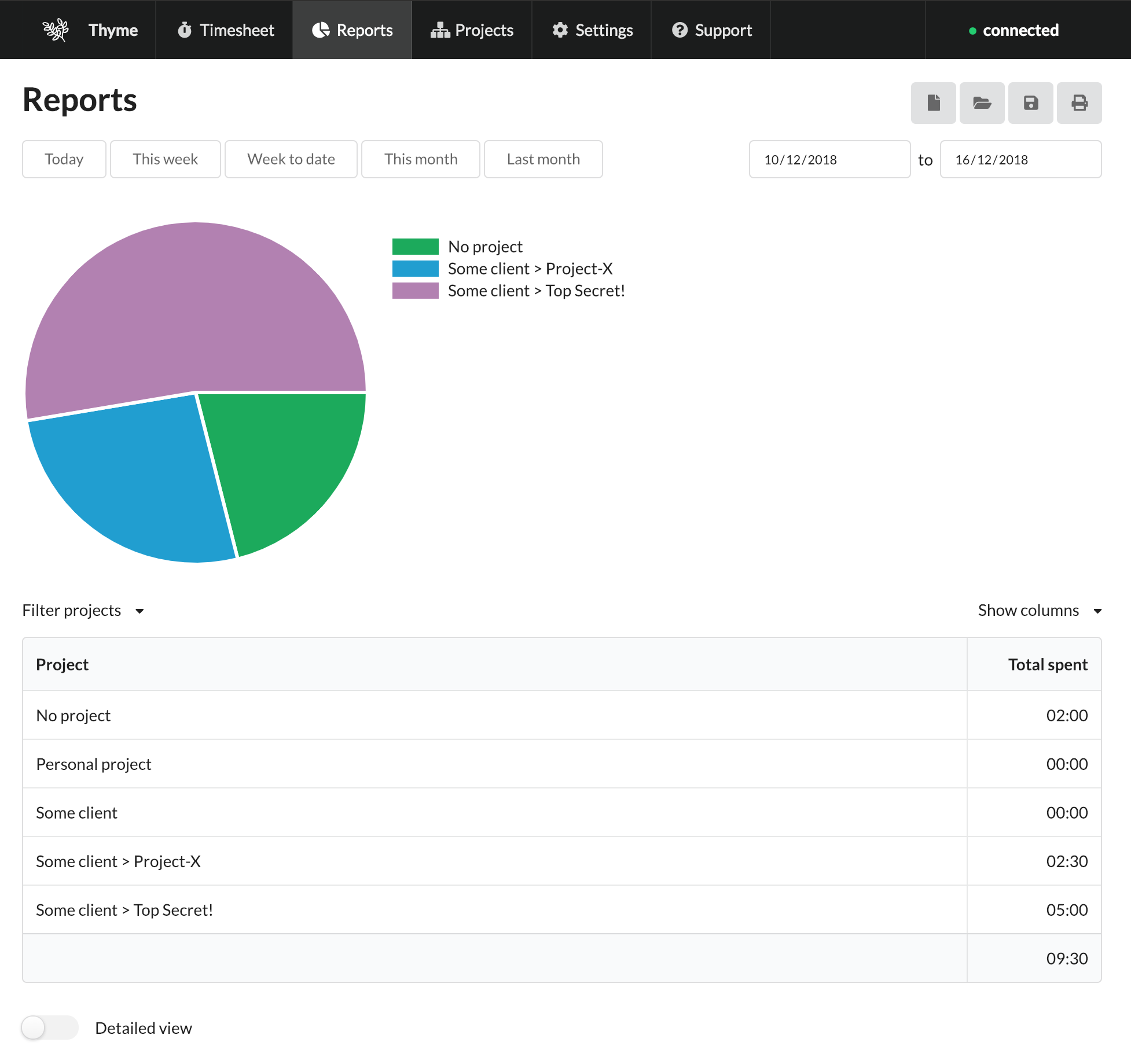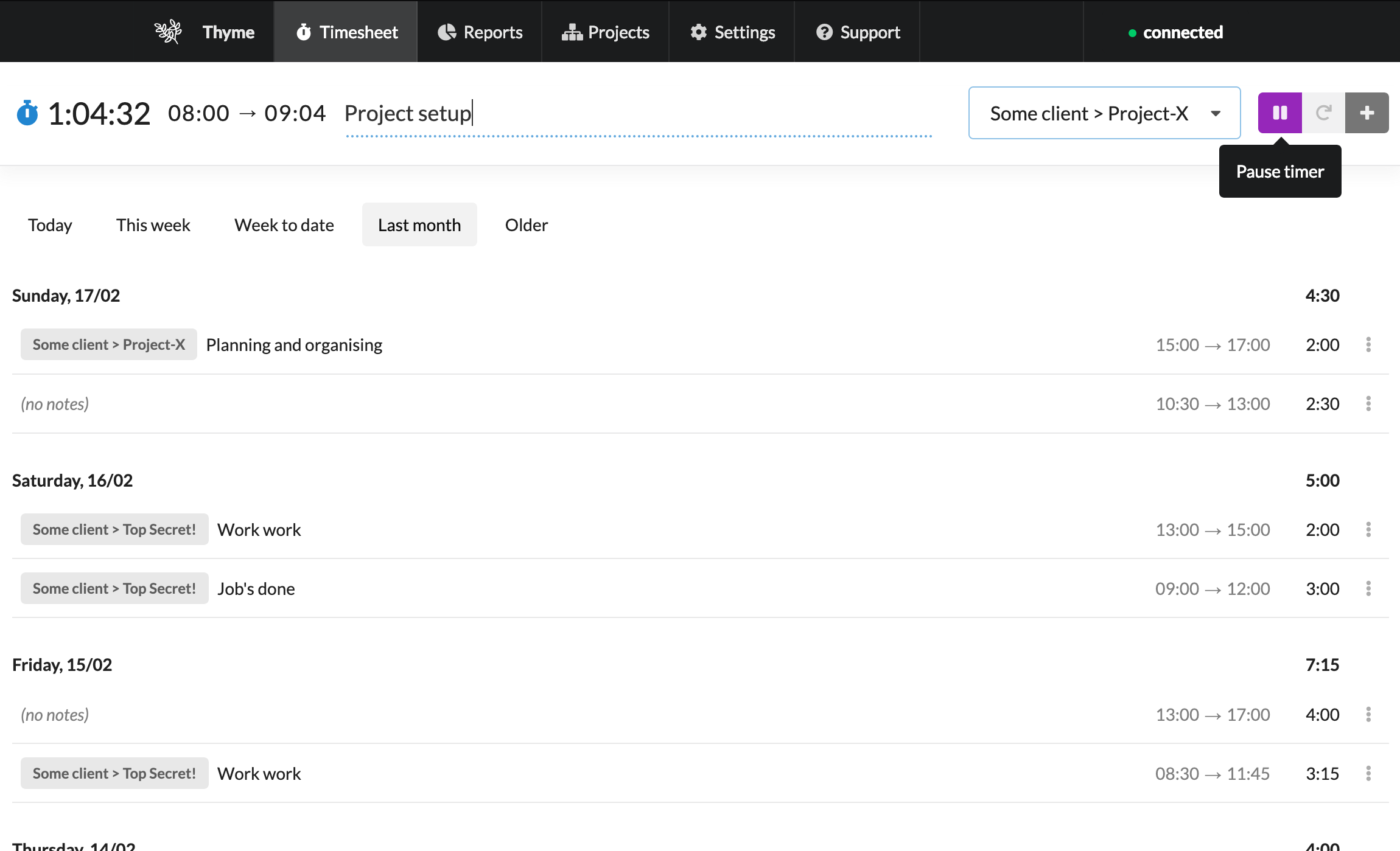 You don't need other people (and companies) looking over your shoulder when keeping your time. With Thyme you control and keep your own data right in your browser.